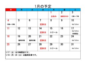 遅くなりましたが、1月の予定をお知らせいたします。