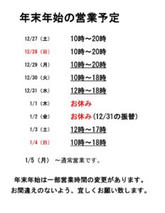★定休日>毎週水曜日 ※祝日の場合は営業。 (他の日に振替の場合あり)